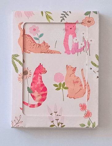 Pack of 8 notecards with white envelopes packaged in a recyclable box with an optional hanger.