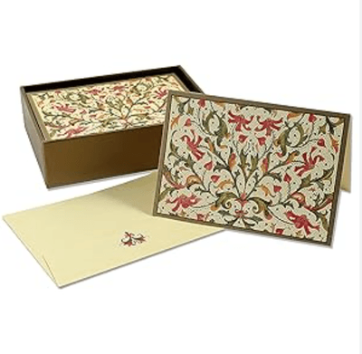 Premium boxed stationery set comes with 14 note cards and 15 envelopes.