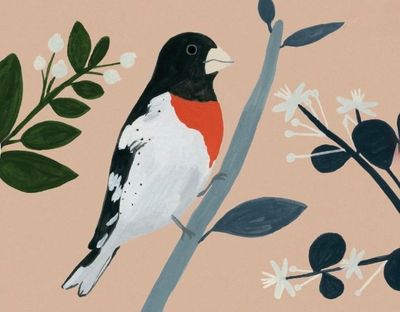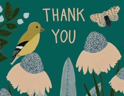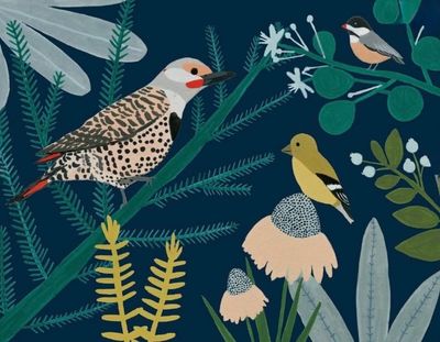 This card set features a charming design of a birds amidst vibrant flowers, all set against a serene background.