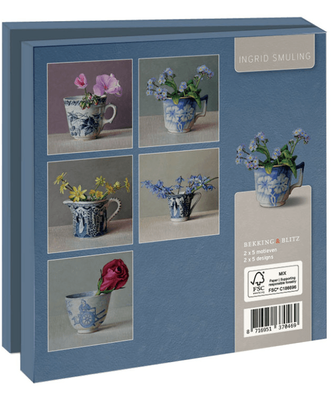 The "A Cup of Flowers" notecard set by Bekking & Blitz features ten exquisite note cards adorned with a charming floral design by Ingrid Smuling. Each card is accompanied by a luxury envelope and is elegantly housed in a matching card folder, ensuring a sophisticated presentation.