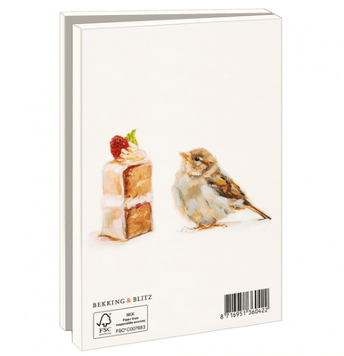 Celebrate special moments with the "Let's Celebrate!" notecard set by Angelique Weijers, featuring a charming design of a bird perched on a cake.