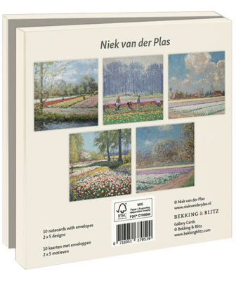 The "Happy Flowerfields" notecard set by Niek van der Plas, published by Bekking & Blitz, features ten exquisite note cards adorned with vibrant floral imagery, encapsulating the essence of joy and nature. Each card is accompanied by a luxury envelope and is elegantly housed in a matching card folder, ensuring a sophisticated presentation.