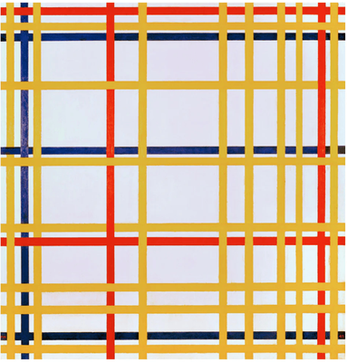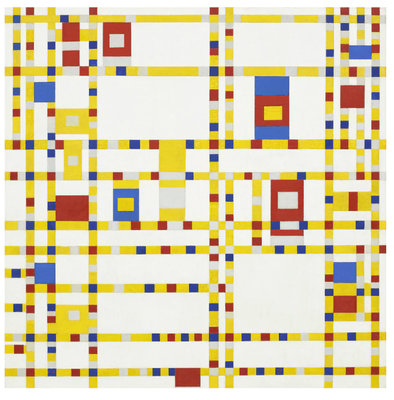 Painting with bold percussion and swinging riffs, Piet Mondrian brought the boogie-woogie beat to his classic, box-step style. In his art, Mondrian ascribed to the aesthetics of neoplasticism, which restricts artists to the most basic lines (straight, horizontal and vertical) and limits colour range to white, black, gray, and primary. Broadway Boogie Woogie (featured on the box top) strays from the rigidity of his former work and, as he said, added a little boogie woogie to his art.