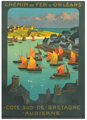 A hotbed of modern European art and culture in the early 20th century, France attracted tourists in droves. Advances in transportation simplified travel for the average person, and French railroad companies and tourism organisations competed to attract visitors to their little part of paradise. Companies hired artists to produce posters of scenic highlights from mountains to coast, city to countryside.