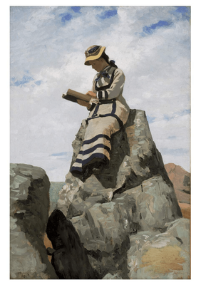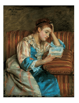 A painting of a woman immersed in a book suggests a story of its own: the woman is at peace, or not; perhaps she is silently thrilled by the words she reads. Is she stealing a moment from daily routine to indulge her love of literature? Is she studiously searching the pages for illumination? Is this book the one that will change her life?