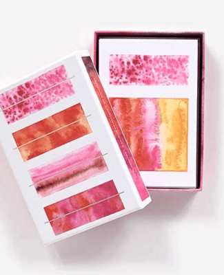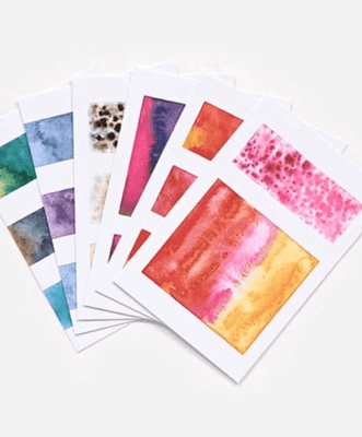 - This superb collection of notecards features Sasha Prood’s stunning water colour swatches arrayed in geometric configurations to create a clean, contemporary aesthetic that will appeal to art and design lovers alike.
