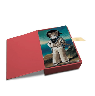 Here is Botticelli’s The Birth of Venus, Vermeer’s Girl with a Pearl Earring, Degas’s The Dancing Class, da Vinci’s Mona Lisa, Fragonard’s The Swing, and many more. Each unique card features one of Herbert’s whimsical works of art and is sure to capture the fancy of cat devotees and art enthusiasts alike.