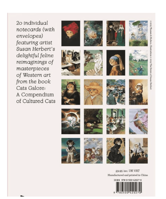 Twenty unique notecards featuring Susan Herbert's feline interpretations of famous paintings from art history.Susan Herbert’s playful versions of famous works of art featuring felines have long delighted both cat and art lovers. Her charming illustrations of artful cats make for irresistible gifts in a new line of notecards and notebooks.