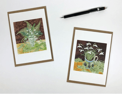 The images on the cards are from works by Angie Lewin and are titled ‘Snowdrops and Lichen’ and ‘Snowdrops and Ferns’. Both have that bright hopefulness that snowdrops bring.