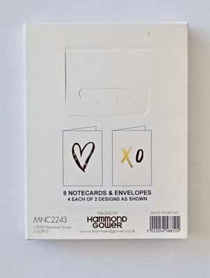 Hammond Gower : Heart +XO 8 Pkt Notecards 2 Designs