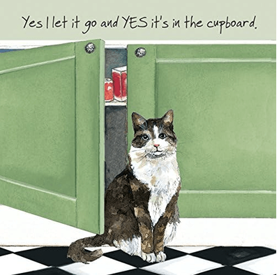 If you love cats or know someone else who does, then you're sure to smile at this delightful image. When your owner just doesn't appreciate such a precious gift, then the only thing to do is to set it free. But it's such a long way back to the garden, so the kitchen cupboard will just have to do instead! A fabulous card by the talented Anna Danielle at Little Dog Laughed.