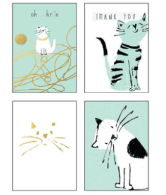 - Hard box containing 10 assorted notecards, a mix of 4 designs with envelopes.