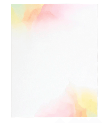 - Each crisp stationery sheet is imbued with a top-and-bottom palette of sorbet-colored hues, evocative of a tropical sunset.·